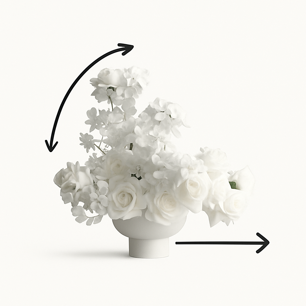 Modern floral design built through structure, vessels, and palette.
